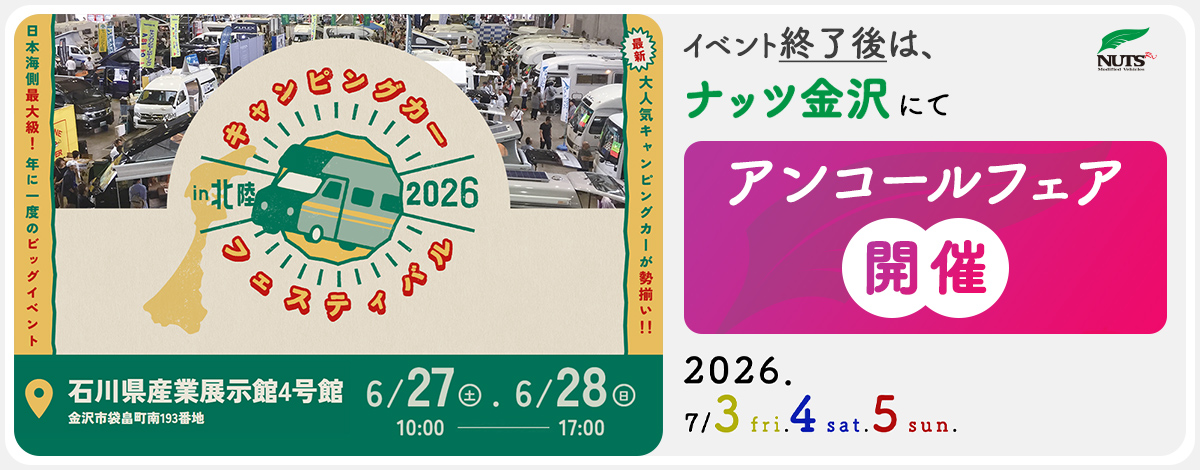- 『キャンピングカーフェスティバル in 北陸2026』出展・アンコールフェア開催!