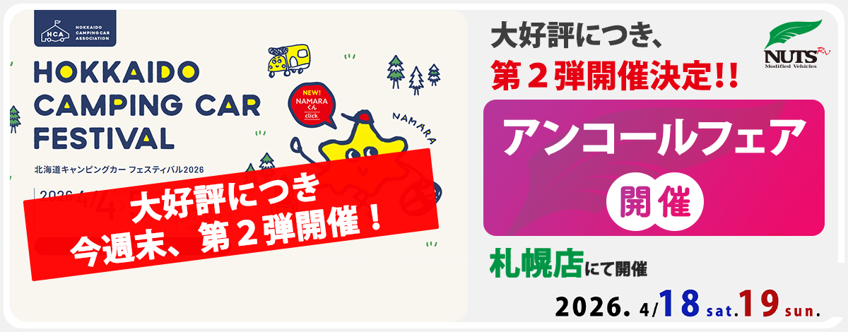 - ★大好評につき第2弾開催★『北海道キャンピングカーフェスティバル2026』アンコールフェア!