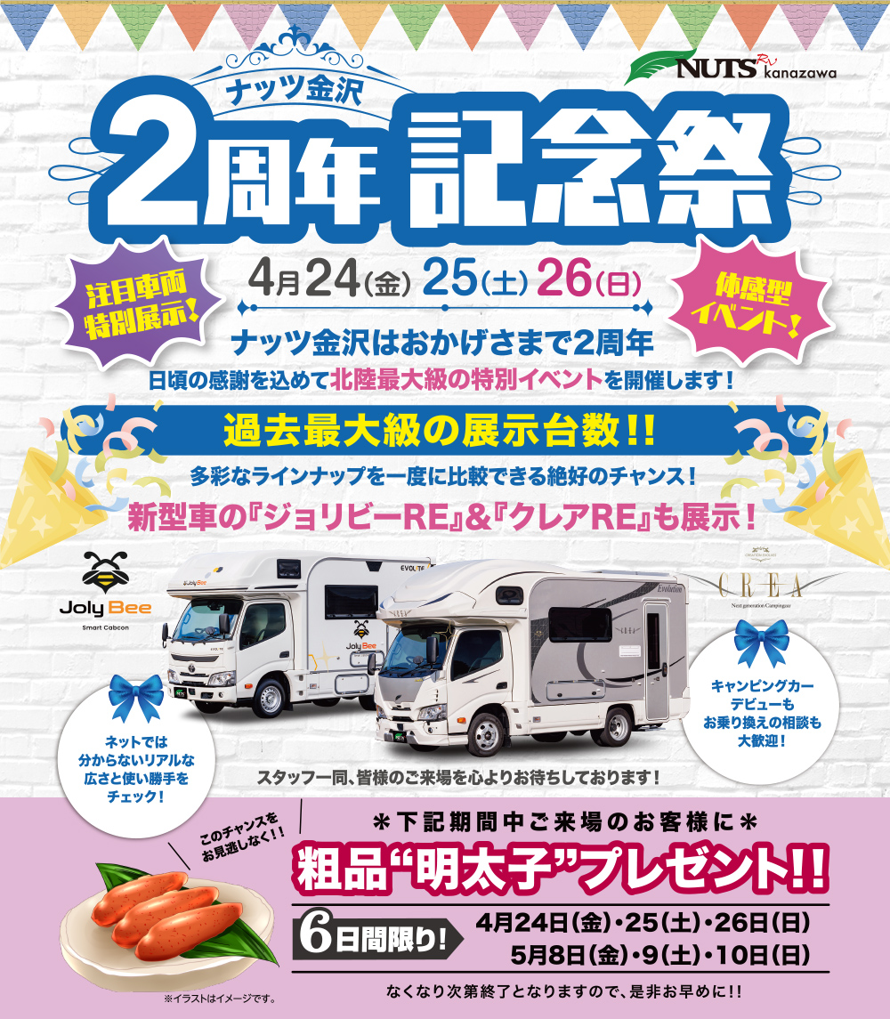 - 特典満載!【ナッツ金沢】2周年記念祭4/24・25・26の3日間開催!