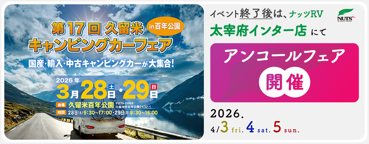 - 『第17回久留米キャンピングカーフェアin百年公園』アンコールフェア開催!