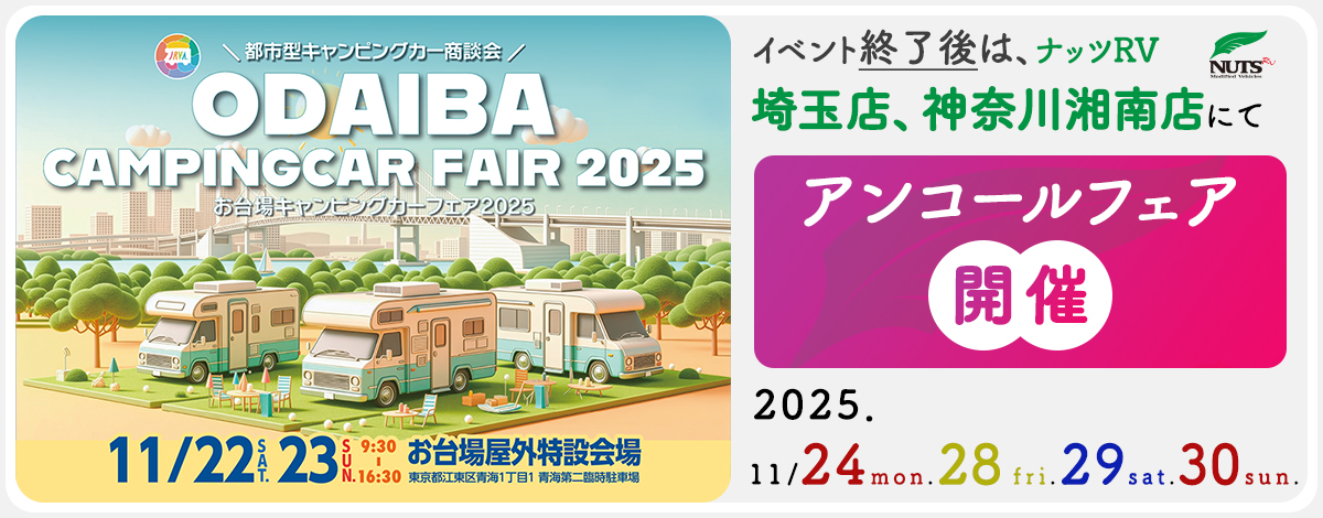 - 『お台場キャンピングカーフェア2025』出展・アンコールフェア開催!