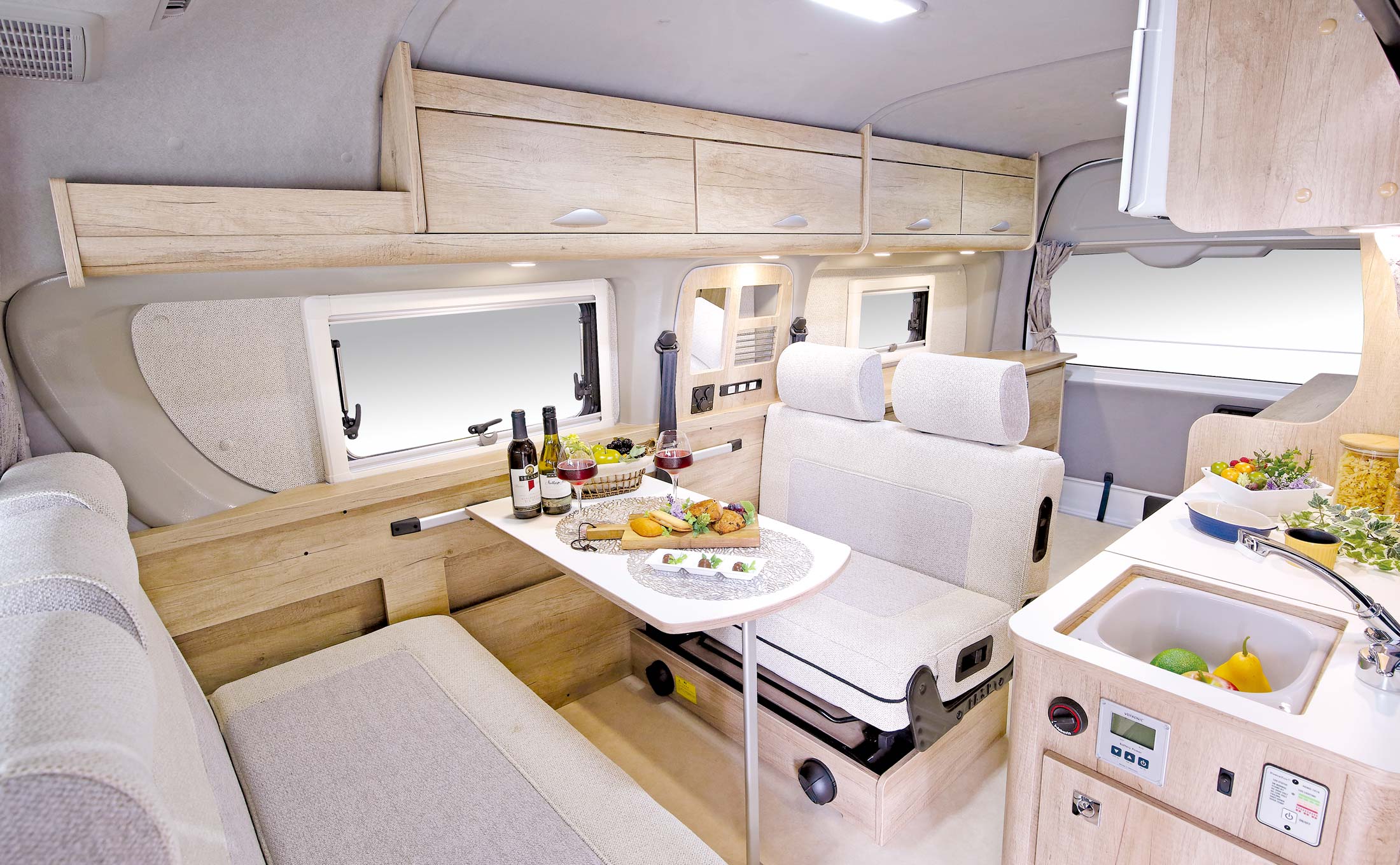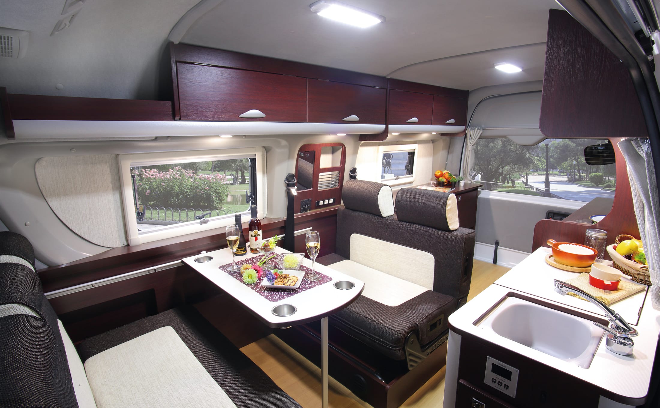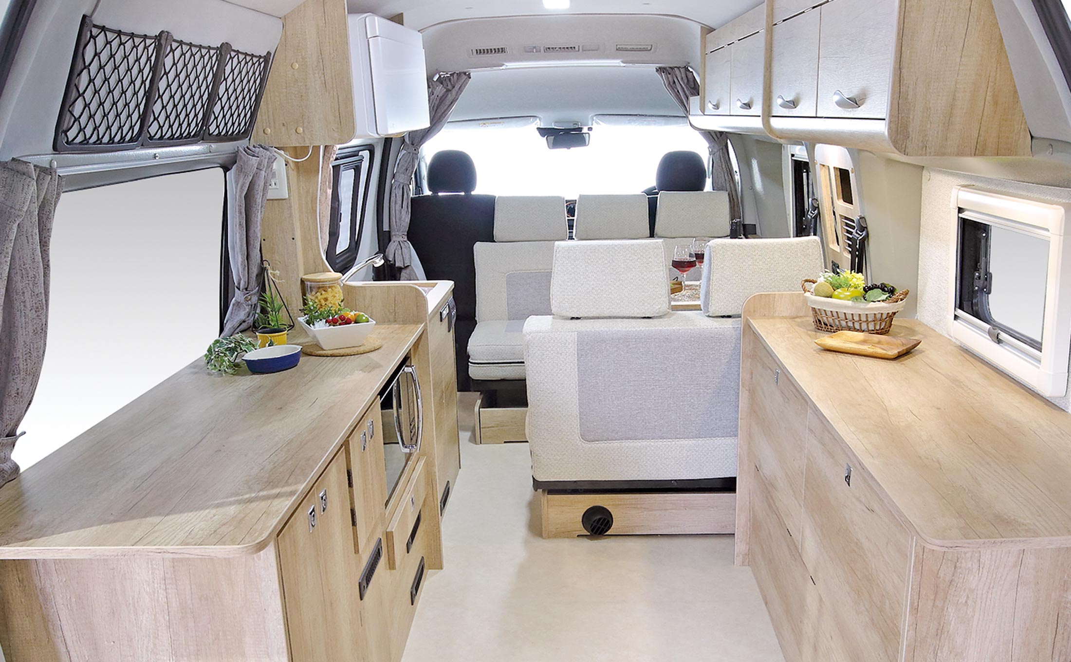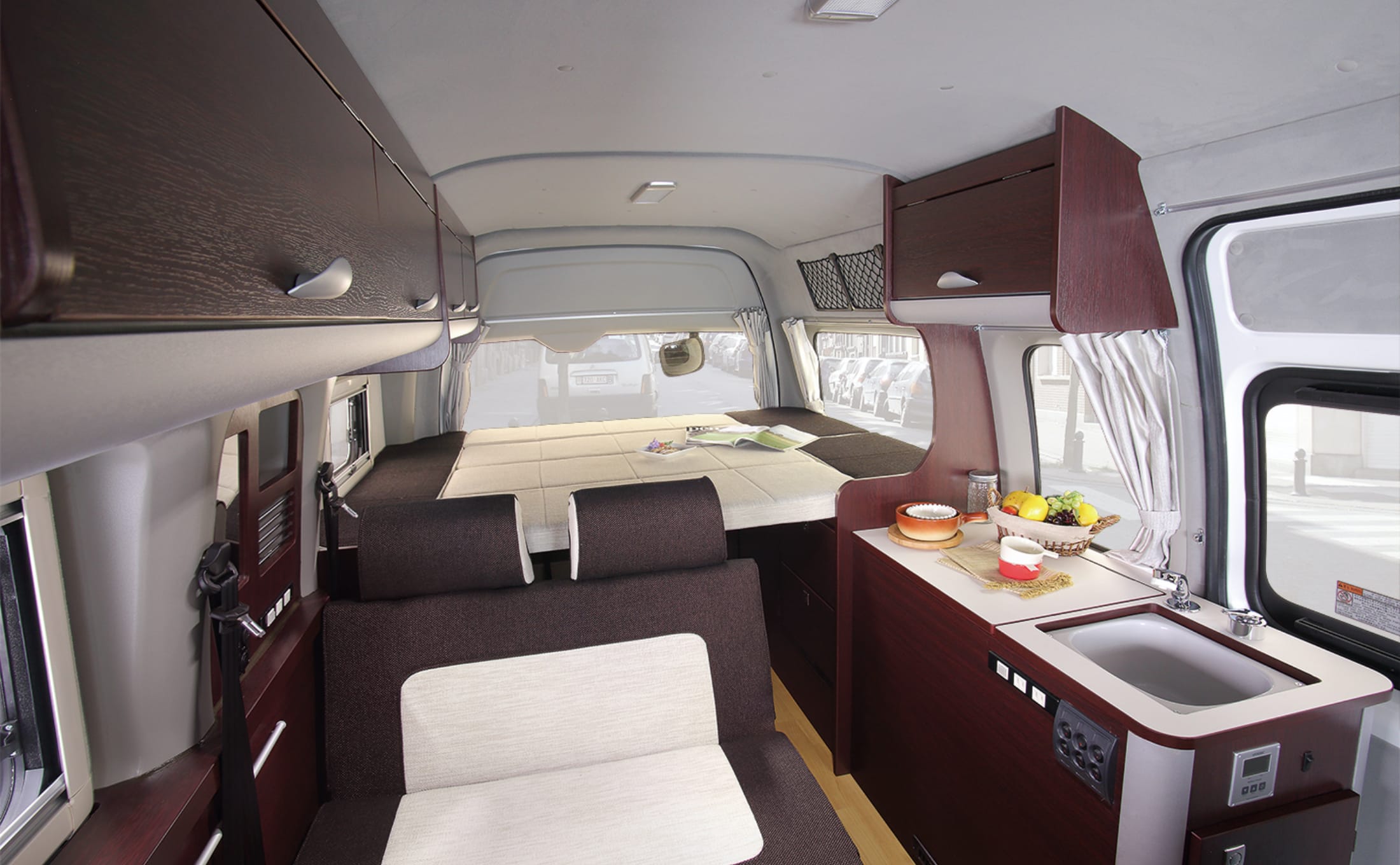 サードシートもリクライニングシートを採用、上部収納庫はフラット化、電装システムも加え「使い勝手と高級感」を備えた「LeekⅡ」。