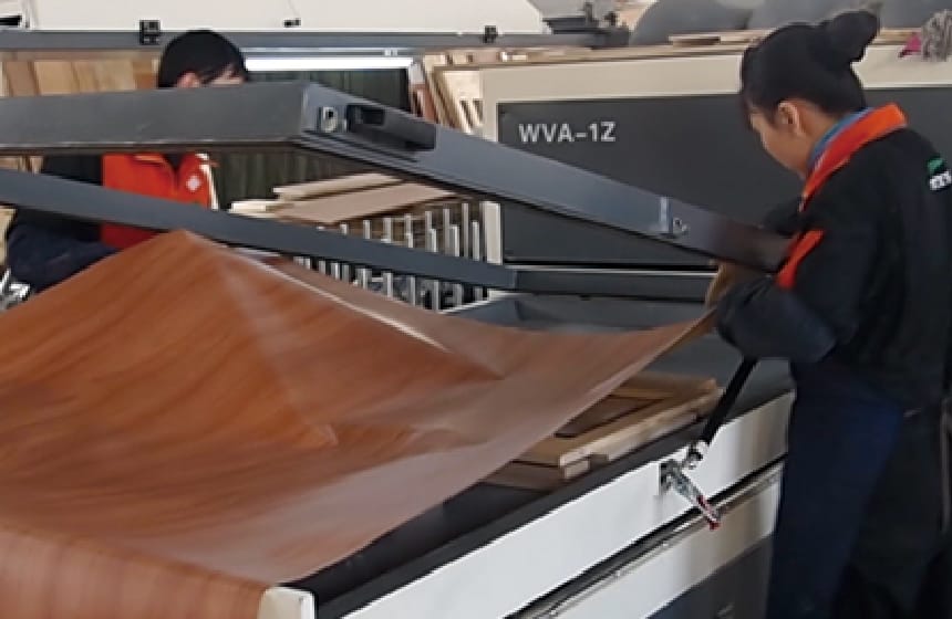 PVC加工機を導入したことにより驚くほどのスピードと軽量化を実現することができました。軽量化した家具素材に塩化ビニールシートを(熱を加えながら)圧着していくことで塗装工程を省くことができ、見た目の美しさもさることながら環境への配慮と品質の安定性を得ることができました。 これはまさしくイノベーション(革命)です。